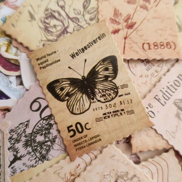 Stickers vintage, estilo estampilas.